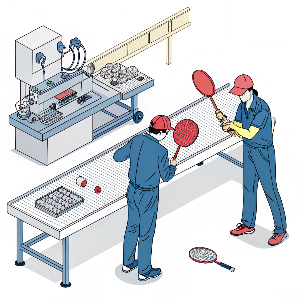 Minimalistic 2D illustration showing quality control inspection and customization in paddle production.