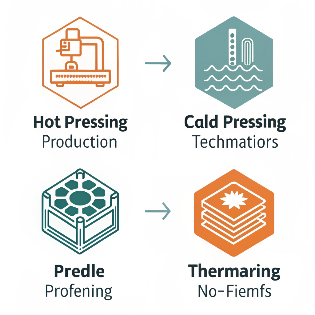 Hot Pressing | High efficiency, excellent impact resistance, strong structural integrity | Potential alteration of material properties, high equipment investment | High-performance mass production |
